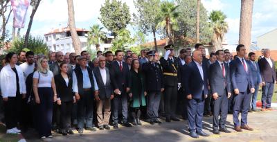 | Atatürk Anıtına çelenk konuldu. Saygı duruşu akabinde İstiklâl Marş söylenerek göndere bayrak çekildi. | ||