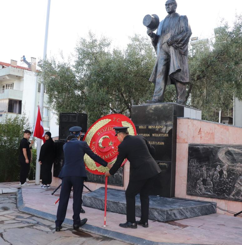 Cumhuriyetimizi 102’ inci yıl dönümün de kutluyoruz Bozdoğan’da Cumhuriyet’in 102’nci yıldönümü ve 29 Ekim Cumhuriyet Bayram’ı kapsamında Bozdoğan Hükümet Konağı Bahçesi’nde bulunan Atatürk Anıtı önünde tören düzenlendi. Atatürk Anıtına çelenk konuldu. Saygı duruşu akabinde İstiklal Marş söylenerek göndere bayrak çekildi. Törene, Bozdoğan Kaymakamı Yunus Emre Polat, , Belediye Başkanı Galip Özel, İlçe Jandarma Komutanı J. Ütğm Kerem Elmas, İlçe Emniyet Amiri Yavuz Sarı, ADÜ Bozdoğan Meslek Yüksekokulu Müdürü Dr. Öğretim Üyesi Yurdanur Tavlan Soydan, Sivil ve askeri erkân, kurum amirleri, siyasi parti temsilcileri, öğretmenler ve öğrenciler katıldı. |